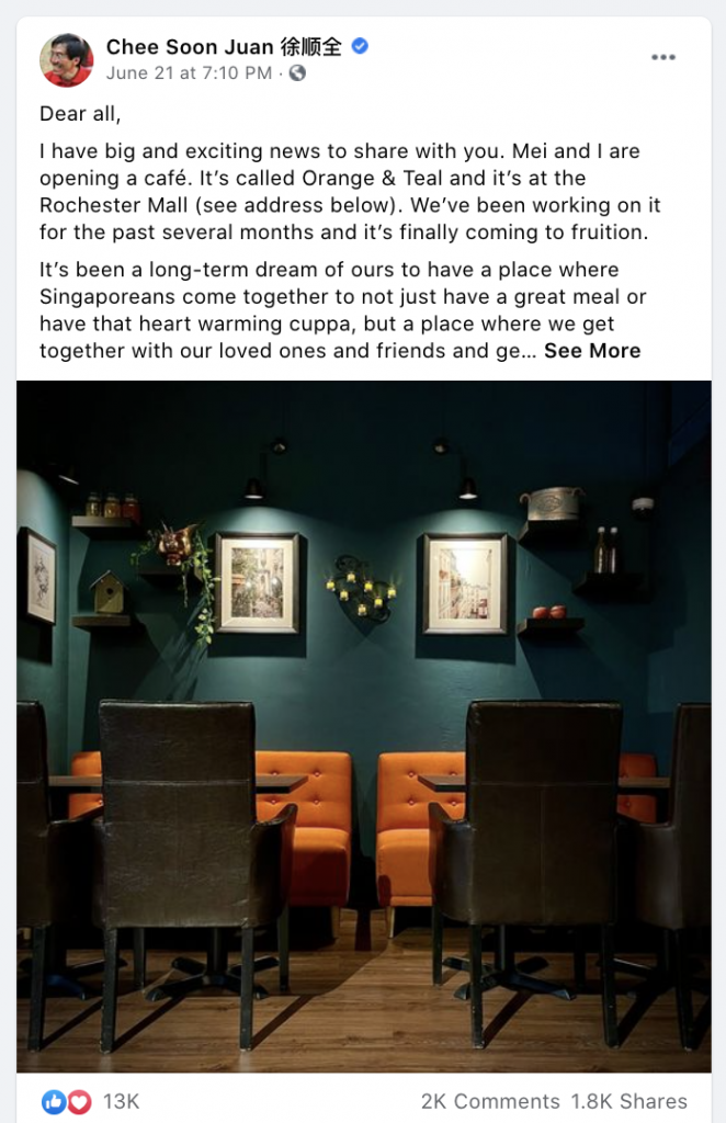 Chee Soon Juan posted on FB on 21st June 2021