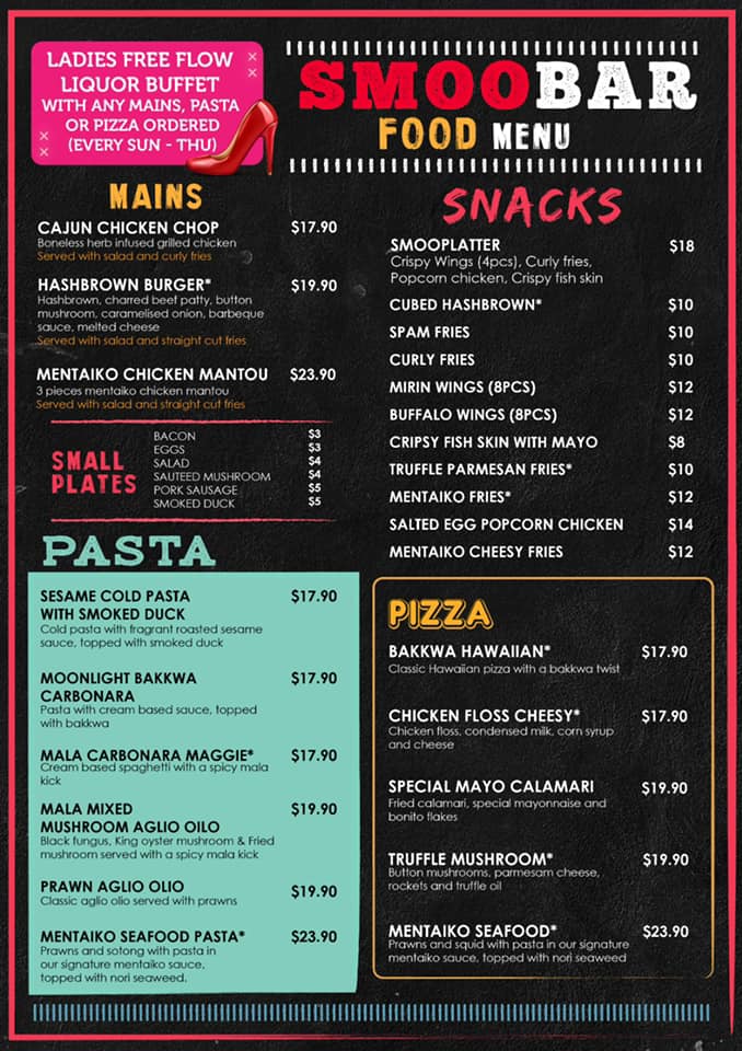 $17.90 (Cajun Chicken Chop, Sesame Cold Pasta with Smoked Duck, Moonlight Bakkwa Carbonara, Bakkwa Hawaiian, Chicken Floss Cheesy),