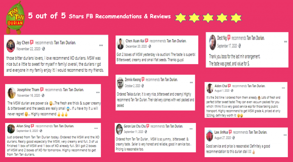 Enjoy Pahang’s Mao Shan Wang durians in the comfort of your home! TanTanDurian is providing FREE Delivery if you order just $35 worth of durians!