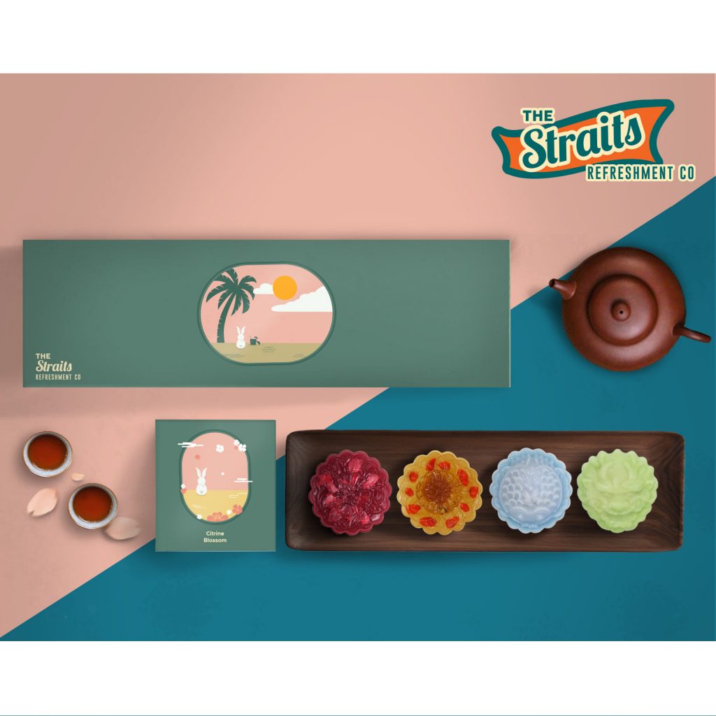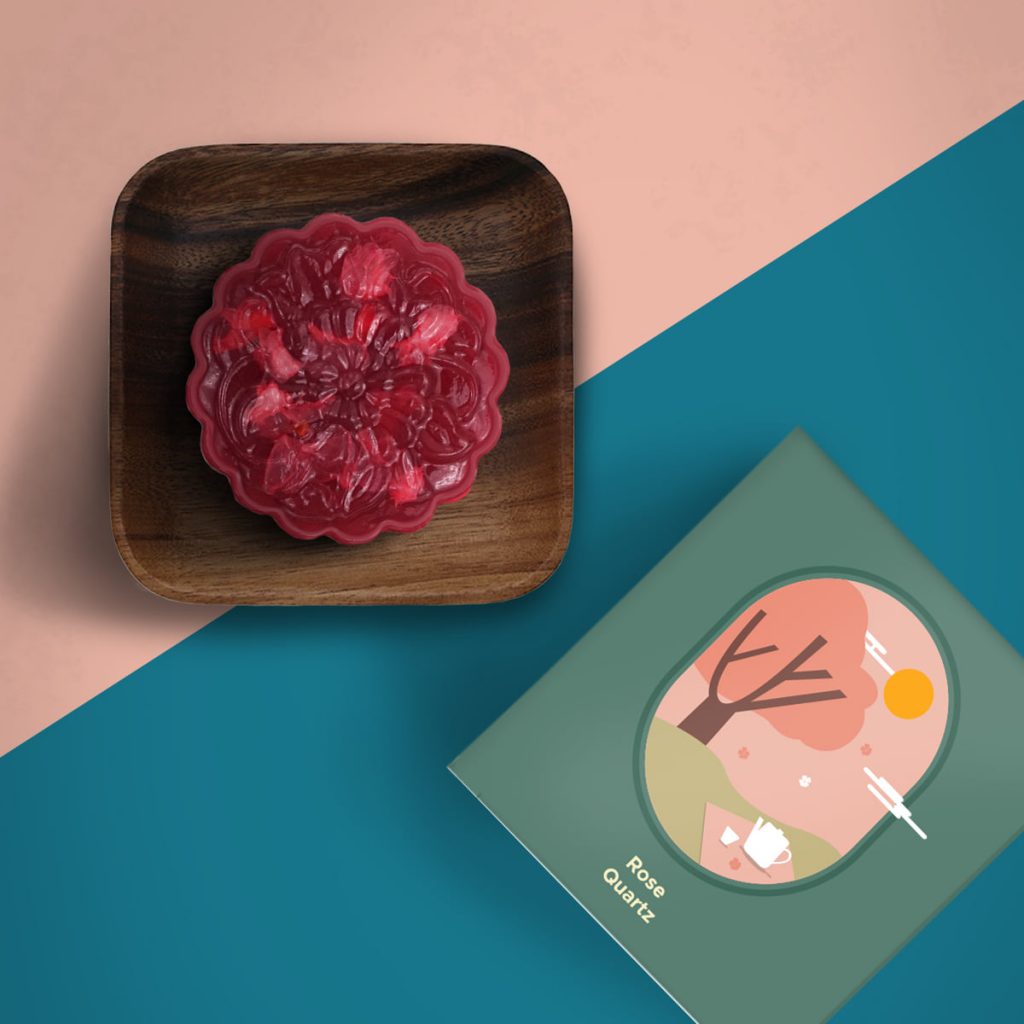 These mooncakes comes in 4 unique Straits inspired flavours: Jade Dragon – Pandan Coconut & Gula Melaka, Blue Aventurine – Blue Pea with Lemongrass & Lime, Rose Quartz – Sakura with Roselle & Berries, Citrine Blossom – Chrysanthemum Goji with Osmanthus & honey!