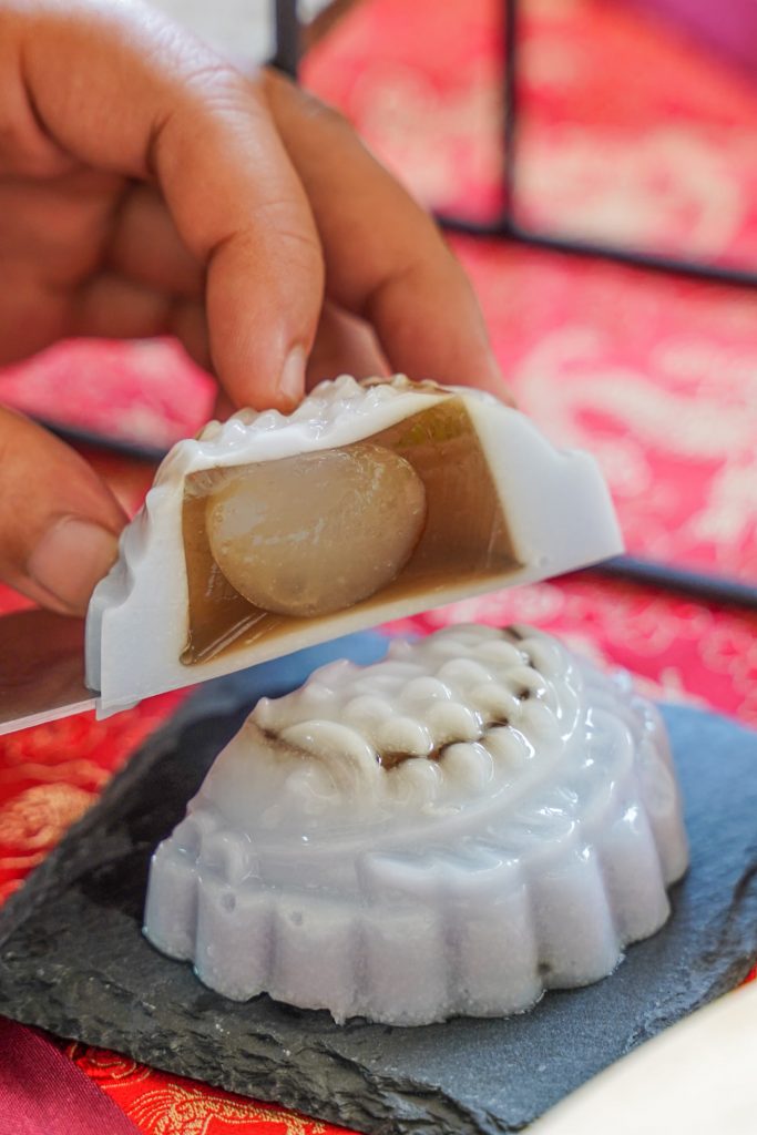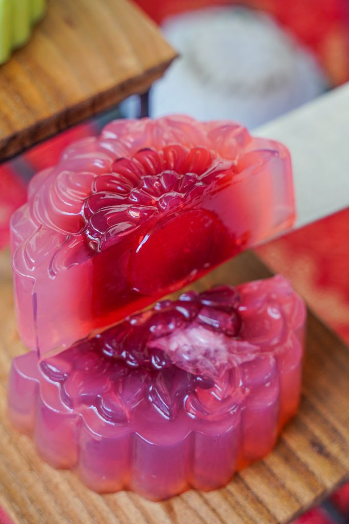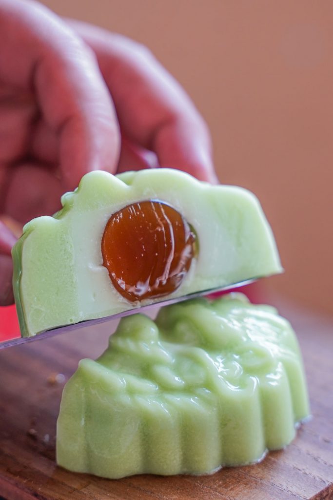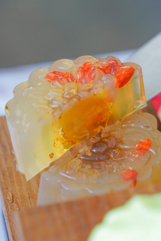 No animal gelatine is used in the making of these mooncakes, the jelly powder is plant base, thus 100% vegan friendly!